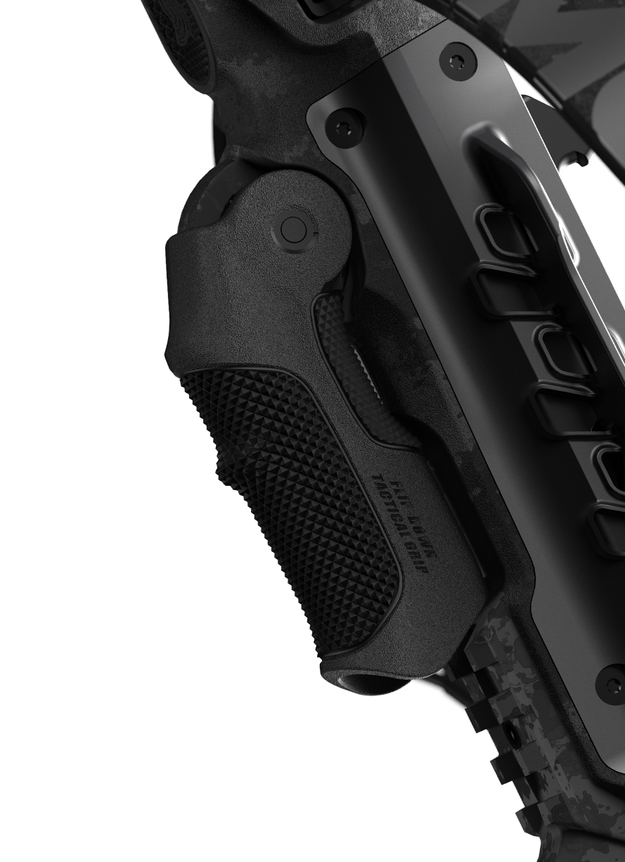 The Demun’s ‘Flip-Down’ Tactical Foregrip provides both versaitlity and stability, with the option of being used as a traditional palm grip or flipped down to transform your shooting position into a rock steady ‘AR’ style platform. Our signature diamond knurled texture ensures a firm hold on your crossbow as you take your shot.